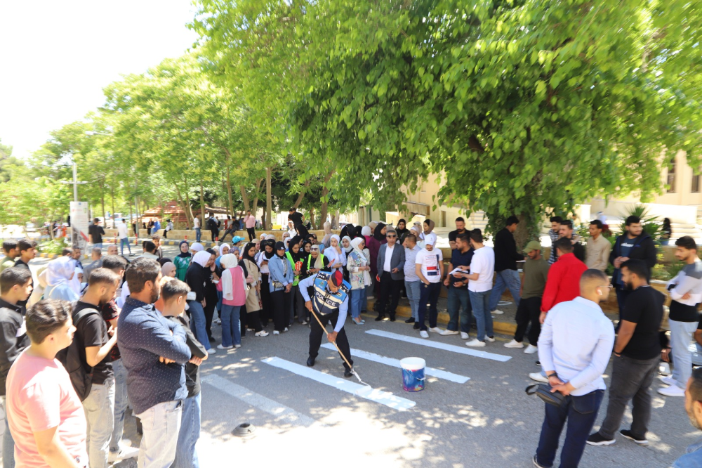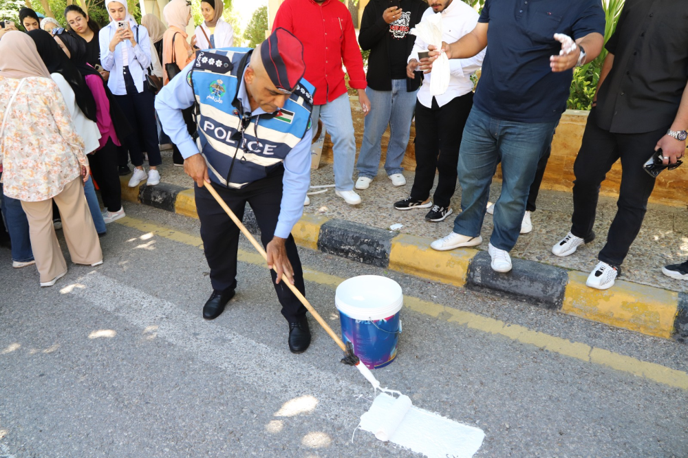 كما أشار الدكتور المفلح إلى أن النشاط الذي نظمته وحدة التنمية وخدمة المجتمع المحلي تضمن تدريباً عملياً لطلبة مساق السلامة المرورية في الجامعة على كيفية عمل ممرات للمشاة في الأماكن المناسبة داخل الجامعة من أجل زيادة الوعي والثقافة المرورية مقدماً الشكر للنقيب المجالي على جهوده المتميزة والمثمرة التي تساهم في إثراء عقول طلبة الجامعة بالعديد من الأمور التي تتعلق بالجوانب الأمنية.
