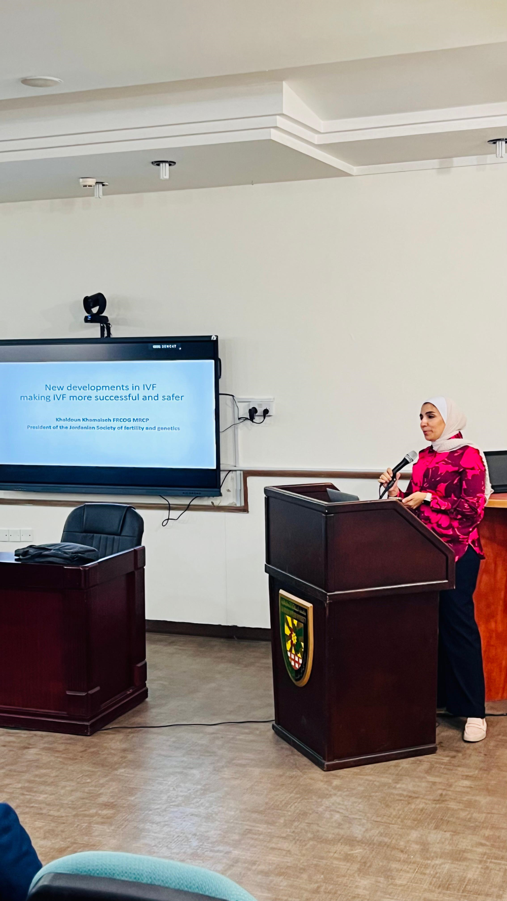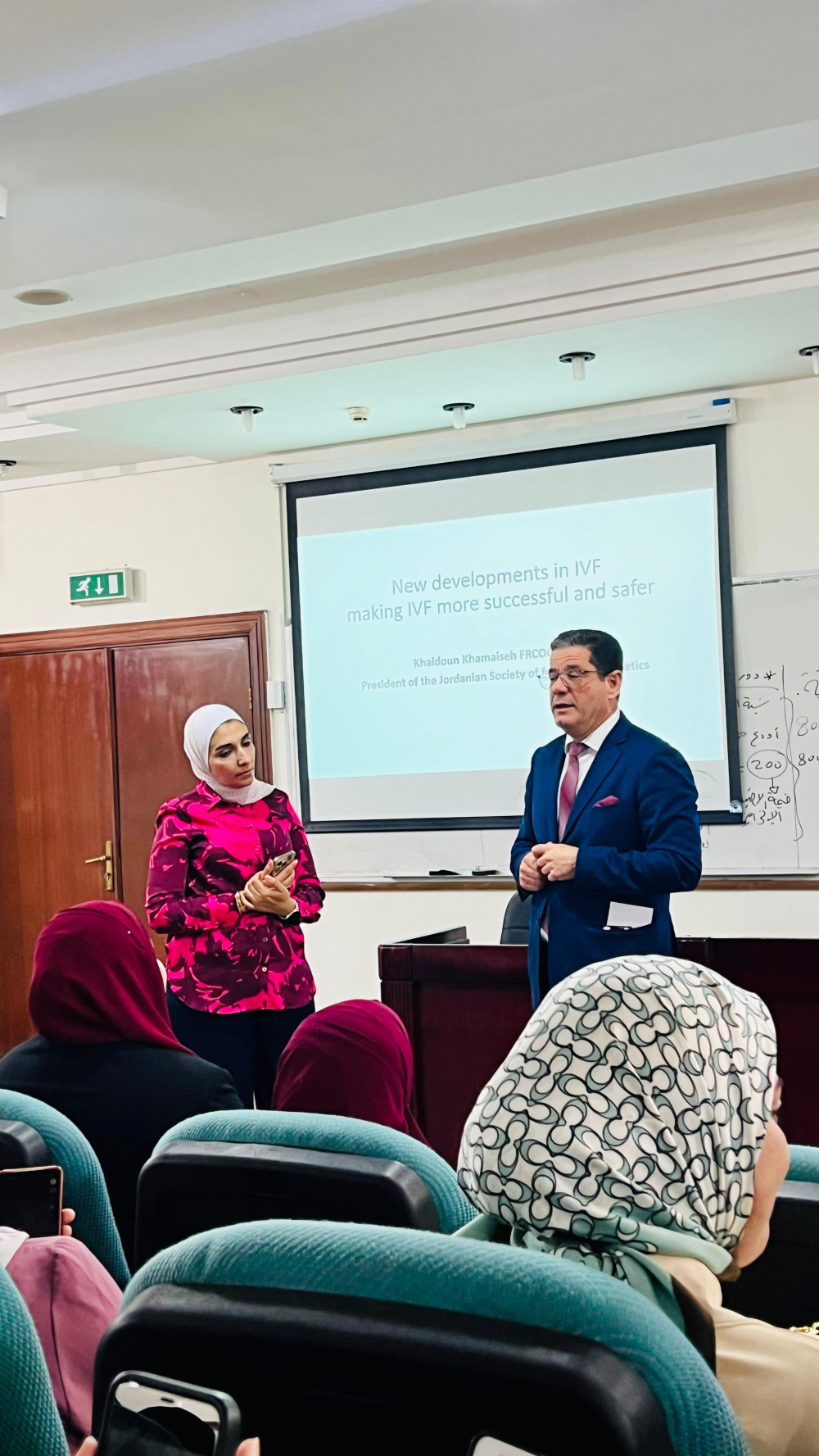 وتحدث الدكتور الخمايسة عن أحدث تقنيات وإجراءات مختبر أطفال الأنابيب وتطور التجربة الأردنية والعالمية في مجال أطفال الأنابيب والفرص والتحديات التي تواجه اي عملية ،إضافة إلى العوامل التي تعتمد عليها فرص نجاحها.