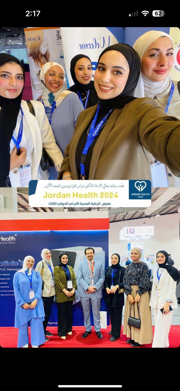 قام وفد من قسم العلوم الطبية المخبرية /تخصص التحاليل الطبية يرافقهم رئيس القسم الدكتور عبدالفتاح الفرارجة ومجموعة من الزملاء الدكتورة ميساء القضاة والدكتور وليد ابوريان بالمشاركة في معرض الرعاية الصحية الثالث المقام في معرض السيارات الدولي / طريق المطار بهدف الإطلاع على احدث الاجهزة الطبية والمخبرية وتقديم احدث الأبحاث الطبية المنشورة واستعراضها لدى المهتمين من الحضور. كما أعرب الأستاذة النرافقون و المشاركون من الطلبة عن مدى اعجابهم من ما وصل اليه التطور الذي يدعو للفخر في التشخيص الطبي من حيث الاجهزة الطبية او الفحوصات الحديثة التي تساعد في تشخيص ومتابعة المرض.