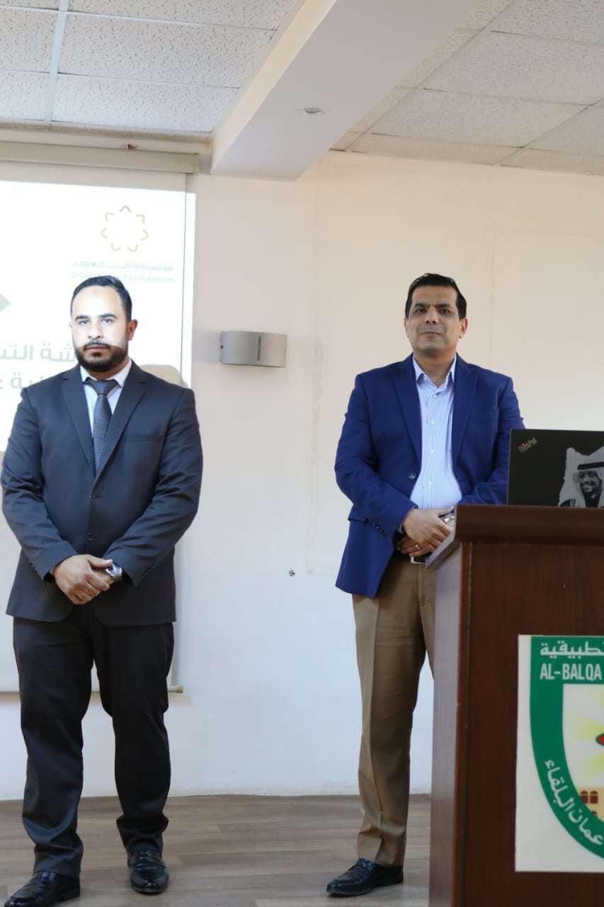بتوجيهات من رئيس جامعة البلقاء التطبيقية الأُستاذ الدكتور احمد فخري العجلوني وانطلاقاً من رؤية الجامعة في تحقيق أهداف التنمية المستدامة لصقل المهارات الشبابية ، نظمت مؤسسة ولي العهد بالتنسيق مع قسم النشاطات الطلابية الورشة التدريبية المعنونة ب ( التسويق الإلكتروني وأثره على الأداء المالي ) بحضور مساعد العميد للشؤون الطلابية المدرس علاء زيادات والأُستاذ احمد ابو شيخه من مؤسسة ولي العهد والمدرب الدكتور محمد زهران وطلبة الكلية .