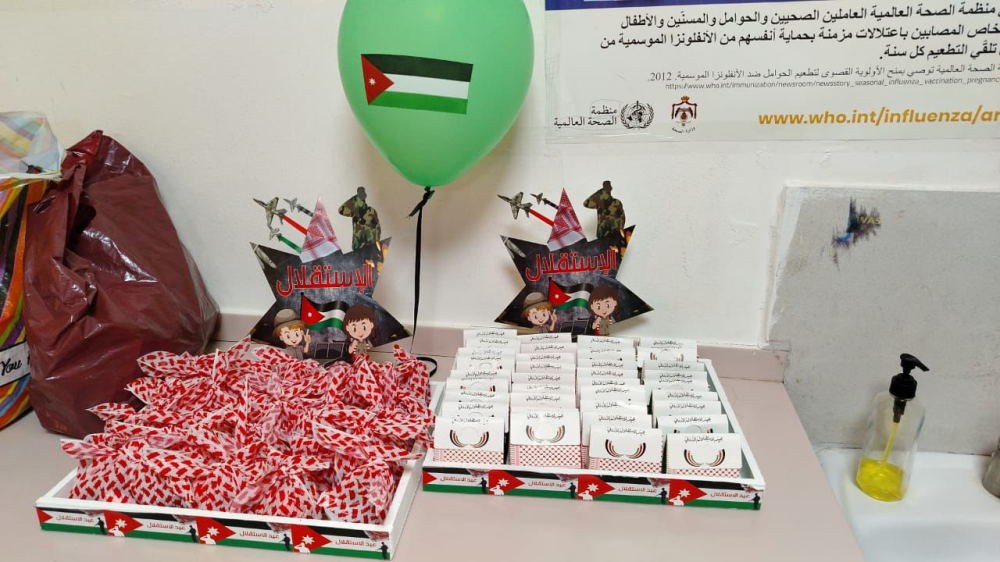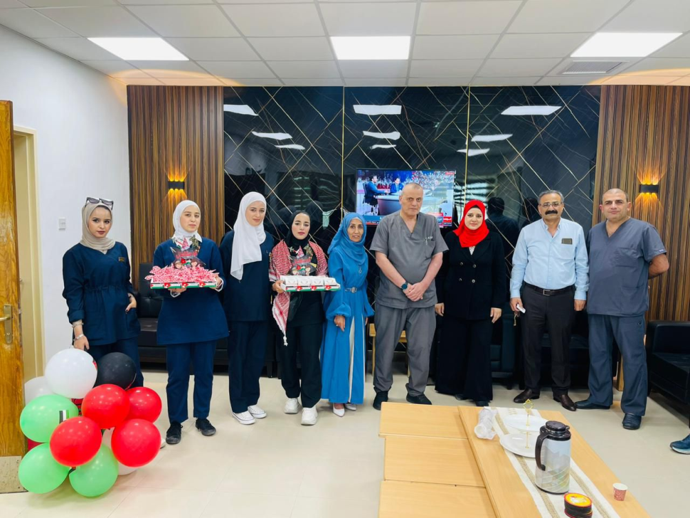 تحت رعاية عميد الكليه الكرك الدكتور هارون الطراونه …أقام طلبة التمريض / ماده النسائية وتحت اشراف الدكتوره نورالهدى المعايطة احتفالا بعيد الاستقلال واليوبيل الفضي لتولي جلالة الملك لسلطاته الدستورية بالمستشفى الكرك الحكومي حيث شمل الحفل توزيع الهدايا على موظفين ومرضى .