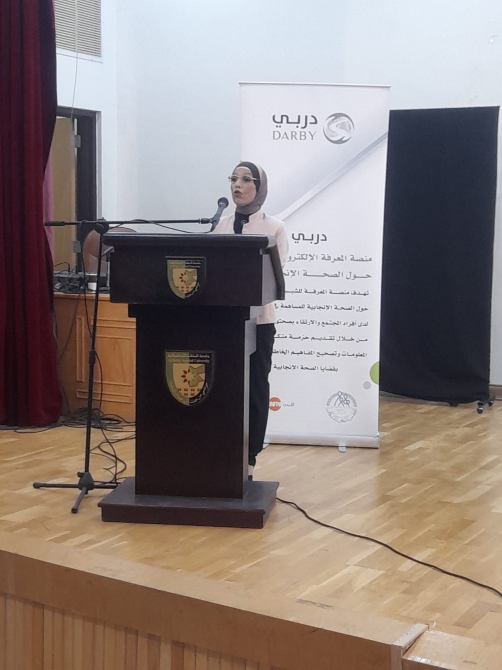 مندوبا عن رئيس جامعة البلقاء التطبيقية الاستاذ الدكتور احمد فخري العجلوني رعى نائب الرئيس للشؤون الكليات ومدير وحدة التنمية وخدمة المجتمع المحلي الاستاذ الدكتور زكريا القضاة الورشة التعريفية بمنصة المعرفة الالكترونية للصحة الانجابية (دربي ) لطلبة الجامعة والتي اقامتها وحدة التنمية وخدمة المجتمع المحلي وبالتعاون مع كلية الاميرة رحمة الجامعية وكلية التمريض وكلية العلوم مدعومة من المجلس الاعلى للسكان.