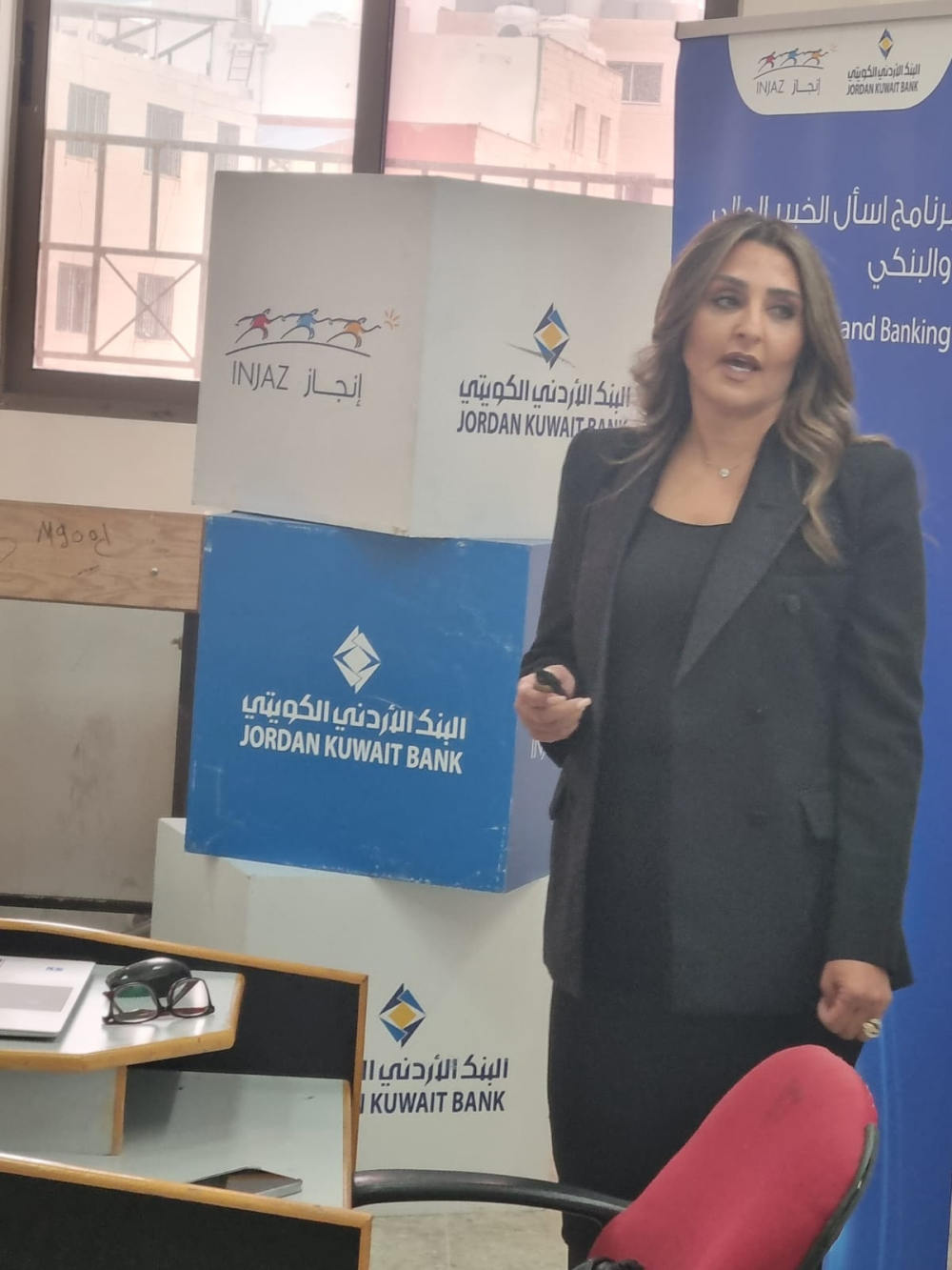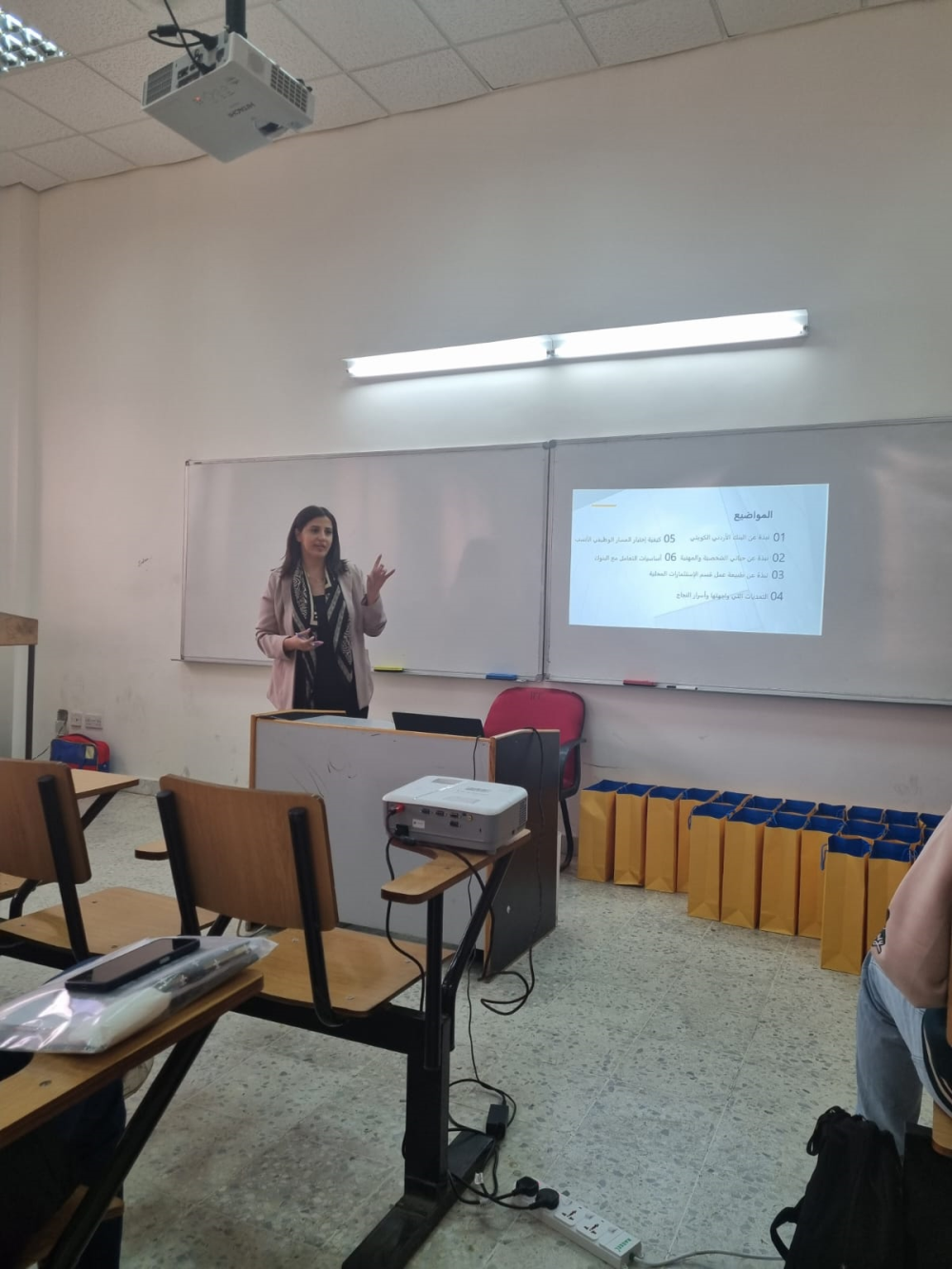 اقامت عماده شؤون الطلبه /مكتب الإرشاد الوظيفي صندوق الملك عبدالله الثاني للتنمية وبالتعاون مع كلية الأعمال المحاضرات التوعية بعنوان " اسأل الخبير المالي والبنكي " من خلال مؤسسة إنجاز لتهيئة الفرص للشباب، وكانت المحاضرات يومي الاثنين 13-5-2024 والثلاثاء 14-5-2024 ودار حوار تفاعلي بين ممثل البنك الأردني الكويتي ملقي المحاضرة والطلبة الحاضرين .