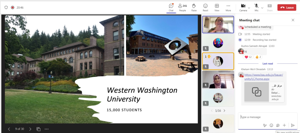 ضمن سلسة ورش العمل التي يعقدها مركز اللغات في جامعة البلقاء التطبيقية بالتعاون مع الدكتورة جينفير غرين/مبعوثة فولبرايت في الجامعة لرفع الكفايات اللغوية لطلبة الجامعة وصقل مهاراتهم في اللغة الإنجليزية، تم عقد ورشة عمل لطلبة كليتي الكرك والشوبك (Online) الأربعاء الموافق 29/6/2024 لما يزيد عن (240) طالب وطالبة. وحضر الورشة نائب عميد كلية الشوبك الاستاذ الدكتور عمر محاسنة والزملاء أعضاء الهيئة التدريسية (أمال ذنيبات، بشرى المجالي/ كلية الكرك) و (وضاح البدور/ كلية الشوبك). نتقدم بالشكر الجزيل للأستاذ الدكتور عميد كلية الشوبك والدكتور عميد كلية الكرك لدعمهم وتعاونهم في تنفيذ هذه الورشة.