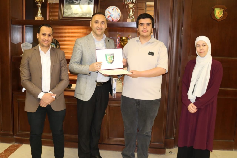 قام عميد كلية عمان الجامعية الأستاذ الدكتور احمد عبد الرحيم الدحيات بتكريم الطالب بشار العقرباوي الفائز بالمركز الاول في بطولة الشطرنج (فردي ) للكليات الجامعية والجامعية المتوسطة والتي نظمها الاتحاد الرياضي داخل حرم كلية عمان الجامعية.