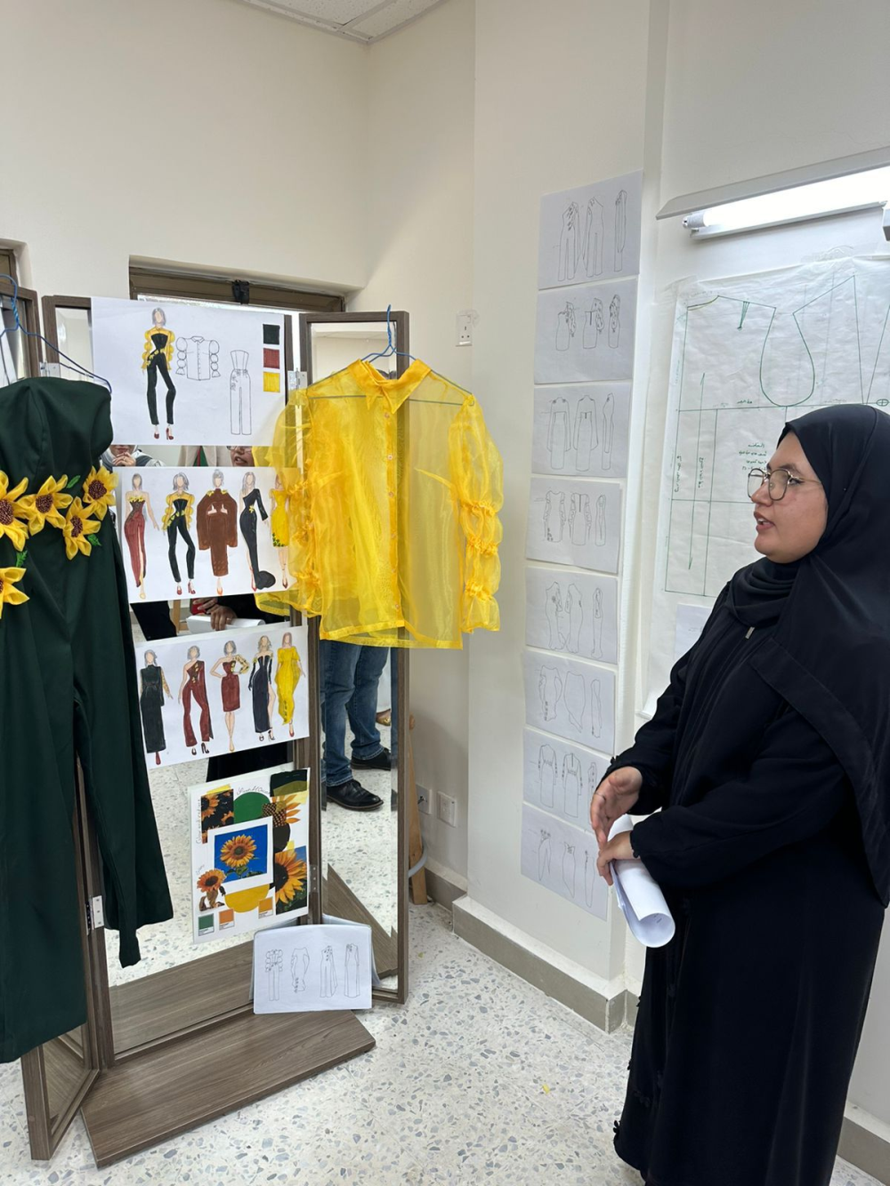ضمن مخرجات مقرر مشروع التخرج في قسم تكنولوجيا الازياء والحياكه  والممول من المشروع الكوري، عرض مجموعة من الطالبات مشاريعهم المتميزة والتي ارتكزت على ثلاث محاور الابتكار- الحلول-الاستدامة