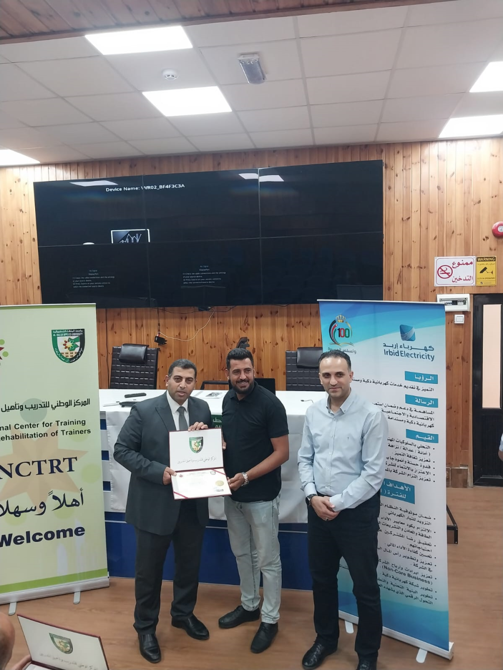 مندوباً عن عطوفة الاستاذ الدكتور احمد فخري العجلوني رئيس جامعة البلقاء التطبيقية رعى الدكتور جودت صافي الكساسبة مدير المركز الوطني للتدريب وتأهيل المدربين اختتام دورة تشغيل وصيانة وفحص المحولات الكهربائية والتي تم عقدها لعدد من موظفي شركة كهرباء اربد .