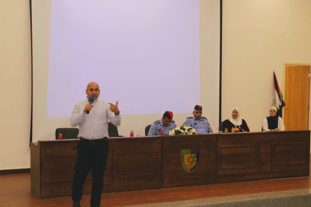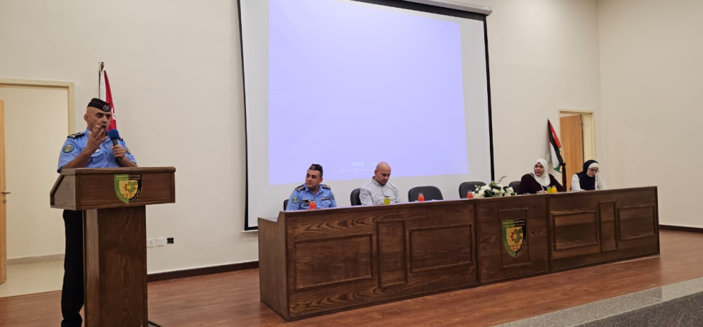 تبعه النقيب أيوب أبو ربيع /وحدة مكافحة الجرائم الإلكترونية حيث استعرض المهام المناطة بوحدة الجرائم الإلكترونية والتي تتمثل بتوعية مستخدمي الشبكة العنكبوتية ومواقع التواصل الاجتماعي بالاستخدام الآمن لتلك المواقع، والجرائم التي تقع على الأشخاص وعلى الأموال ،وأن بعض الجرائم أصبحت ترتكب عبر الوسائل الإلكترونية مثل: جرائم الاحتيال والابتزاز وانتحال الشخصية.