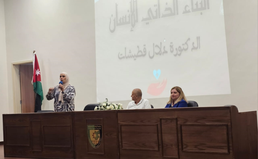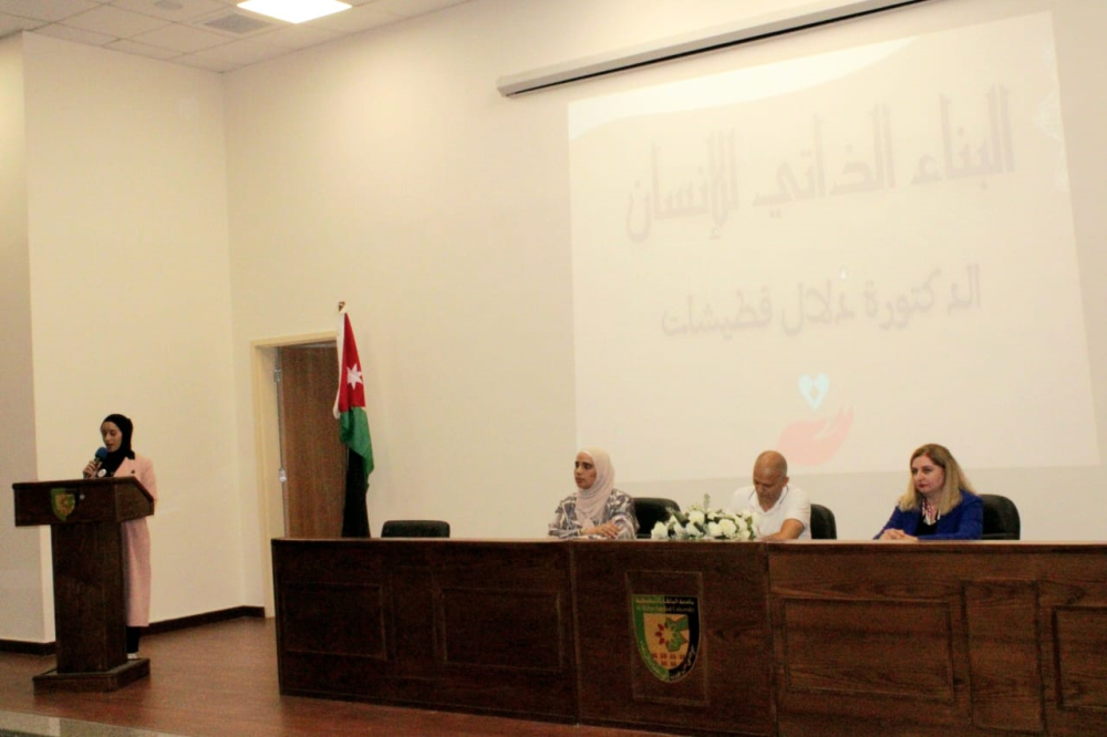 إنطلاقاً من دور جامعة البلقاء التطبيقية الريادي وبتوجيهات من عميد كلية الأميرة عالية الجامعية الأستاذ الدكتور ناجي السعايدة في تشجيع الأنشطة اللامنهجية والإبداعية للارتقاء بشخصية الطالب الجامعي للمشاركة الفاعلة في بناء المجتمع وبالتنسيق مع مساعد العميد للشؤون الطلابية رعى نائب العميد للشؤون الاكاديمية الأستاذ الدكتور طارق أبو هزيم محاضرة بعنوان ( البناء الذاتي للإنسان) للباحثة الدكتورة دلال قطيشات .