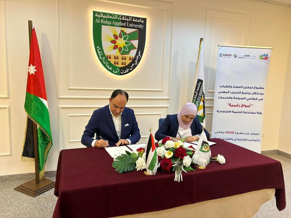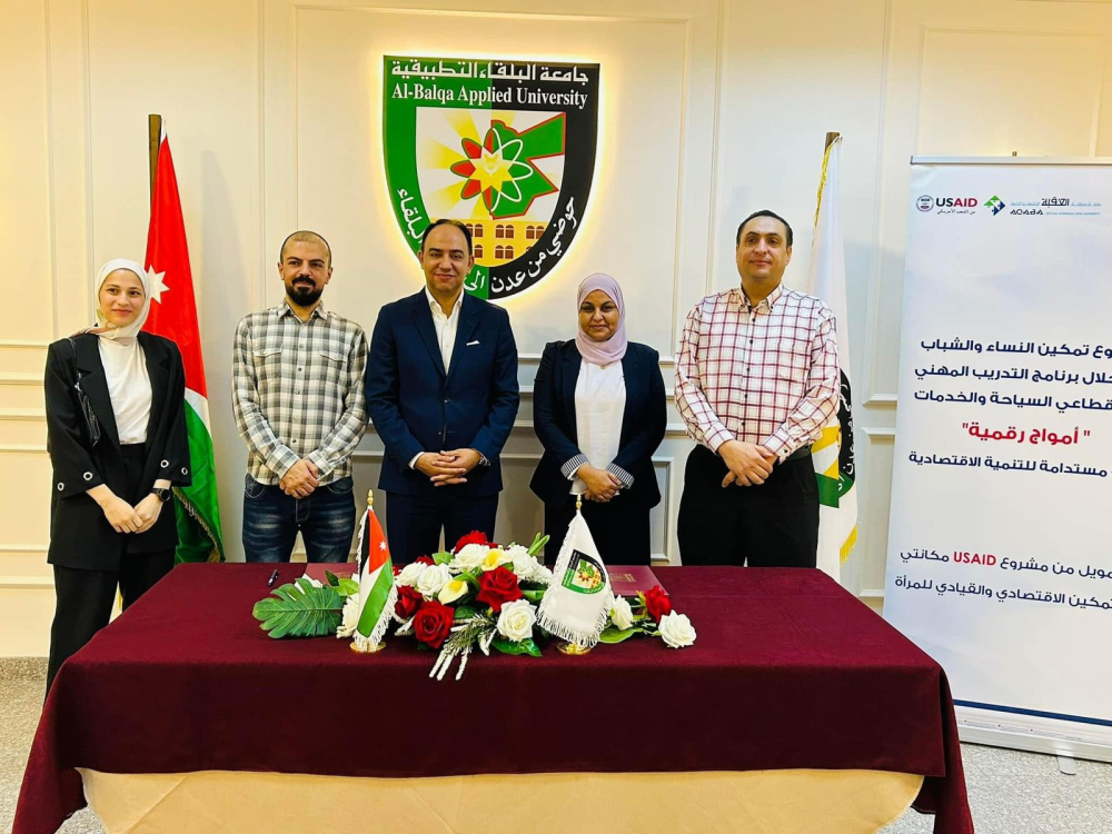 مندوباً عن رئيس جامعة البلقاء التطبيقية، الاستاذ الدكتور أحمد فخري العجلوني، وقع الدكتور احمد بهحت شموط عميد كلية العقبة الجامعية مع مركز شباب الغد الذي مثلته المهندسة اسلام النجادات، مذكرة تفاهم بحضور رئيس قسم العلوم المالية و الادارية ومساعد العميد للشؤون الطلابية في الكلية،