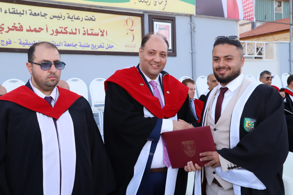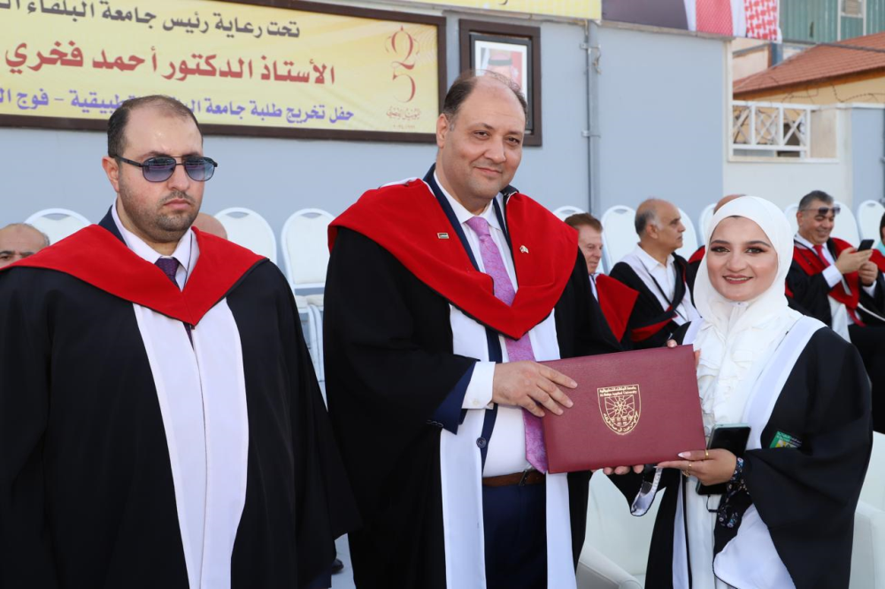 مندوبا عن رئيس جامعة البلقاء التطبيقية الأستاذ الدكتور احمد فخري العجلوني رعى عميد كلية الاعمال في الجامعة الأستاذ الدكتور محمد سليمان النسور  حفل تخريج الفوج الرابع  والعشرين من  طلبة كلية الأعمال بحضور عميد شؤون الطلبة الأستاذ الدكتور خالد ناصر الزعبي والمسجل العام الدكتور زكريا عطيات واعضاء الهيئة التدريسية في كلية الأعمال وجمع غفير من ذوي الطلبة الخريجين وذلك على  استاد الجامعة الرئيسي في السلط.