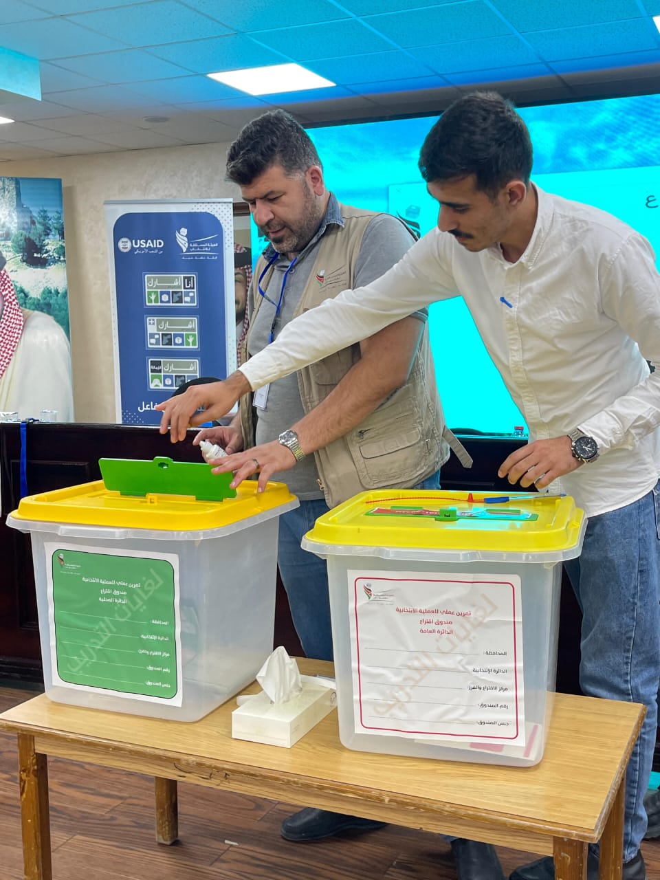 وفي نهاية الجلسة الحوارية قام الحضور بتوجيه أسئلة متعددة تتعلق في العملية الانتخابية والإجراءات التنفيذية التي تقوم بها الهيئة لتنفيذ العملية الانتخابية، إضافة الى تفعيل دور الشباب في العملية الانتخابية ودعوتهم للاختيار الصحيح للشخص الذي يمثلهم كما تم نقاش التجربة الحزبية القادمة في المجلس القادم .وفي الختام قام فريق برنامج أنا أشارك بعمل تمرين عملي كمحاكاة للعملية الانتخابية حيث اختبر المشاركين طريقة الاقتراع للدائرة المحلية والاقتراع للدائرة العامة، كما تعرفوا على إجراءات الاقتراع كاملة.