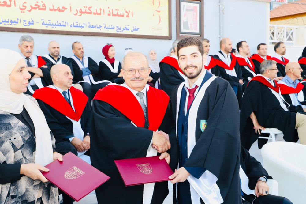 مندوباً عن رئيس جامعة البلقاء التطبيقية الأستاذ الدكتور أحمد فخري العجلوني رعى نائب عميد كلية الهندسة التكنولوجية الاستاذ الدكتور احمد طالب الشواقفة تخريج الفوج الرابع والعشرون لطلبة الكلية لمرحلتي ( الدبلوم ، البكالوريوس ) بحضور عميد شؤون الطلبة الأستاذ الدكتور خالد ناصر الزعبي والمسجل العام الدكتور زكريا عطيات والهيئة التدريسية وأهالي الطلبة وذلك على الملعب الرئيسي في الجامعة.