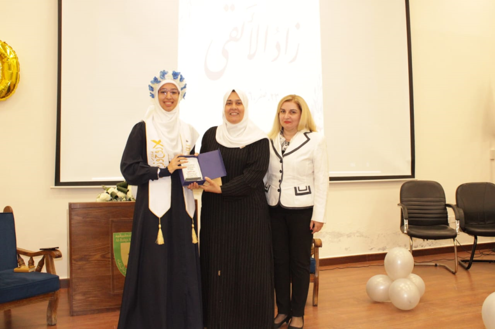 وفي نهاية المحاضرة تم تكريم الدكتورة عرين المجالي والطالبة مريم قشوع