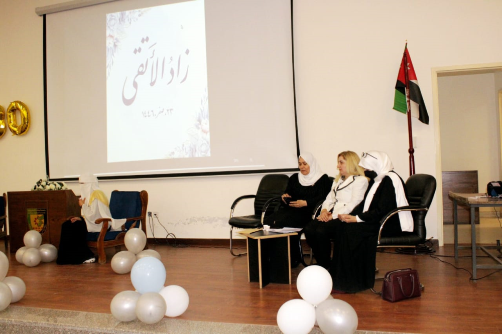انطلاقاً من رؤية ورسالة كلية الأميرة عالية الجامعية التي تهدف الى تنمية مهارات التفكير وصقل شخصية الطالبات وتطويرها وبتوجيهات من عميد كلية الأميرة عالية الجامعية الأستاذ الدكتور ناجي السعايدة وبالتنسيق مع مساعد العميد للشؤون الطلابية ونادي روح وريحان رعى نائب العميد للدراسات العليا والبحث العلمي الدكتورة ميساء الروابدة محاضرة بعنوان: (أثر القران الكريم في حياة الطالبة المسلمة) ألقتها الدكتورة عرين المجالي
