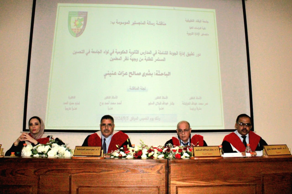 ( دور تطبيق إدارة الجودة الشاملة في المدارس الثانوية الحكومية في لواء الجامعة في التحسين المستمر للطلبة من وجهة نظر المعلمين )