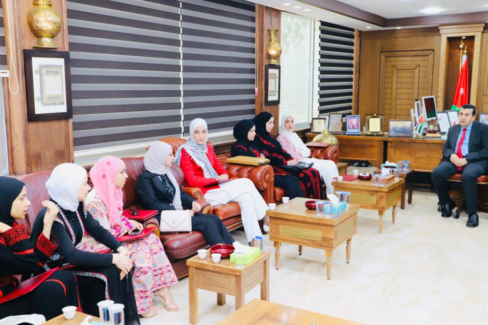التقى رئيس جامعة البلقاء التطبيقية الأستاذ الدكتور أحمد فخري العجلوني بوفد الطالبات الفلسطينيات من جامعتي فلسطين التقنية - خضوري، وجامعة القدس المفتوحة وذلك في إطار التعاون الأكاديمي والتبادل الثقافي بين البلقاء التطبيقية والجامعات الفلسطينية