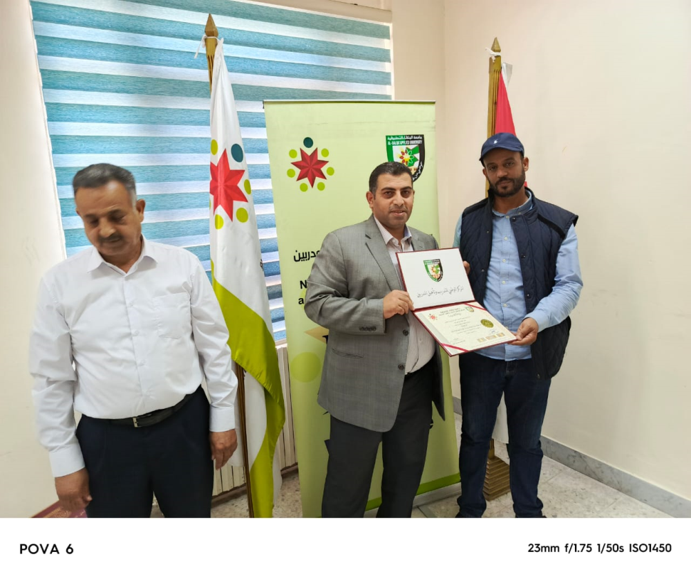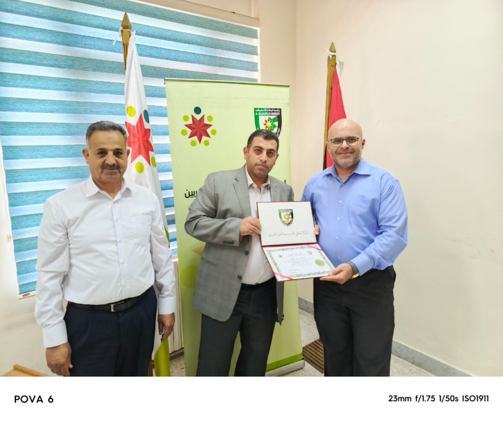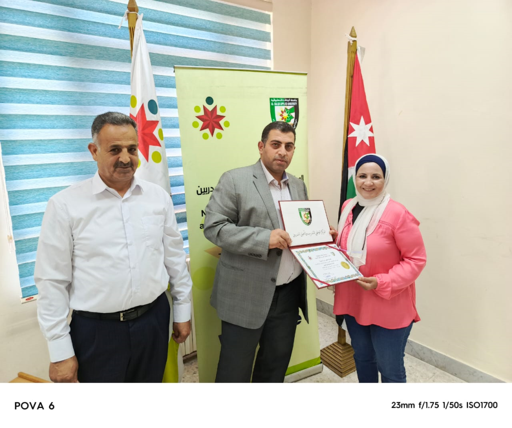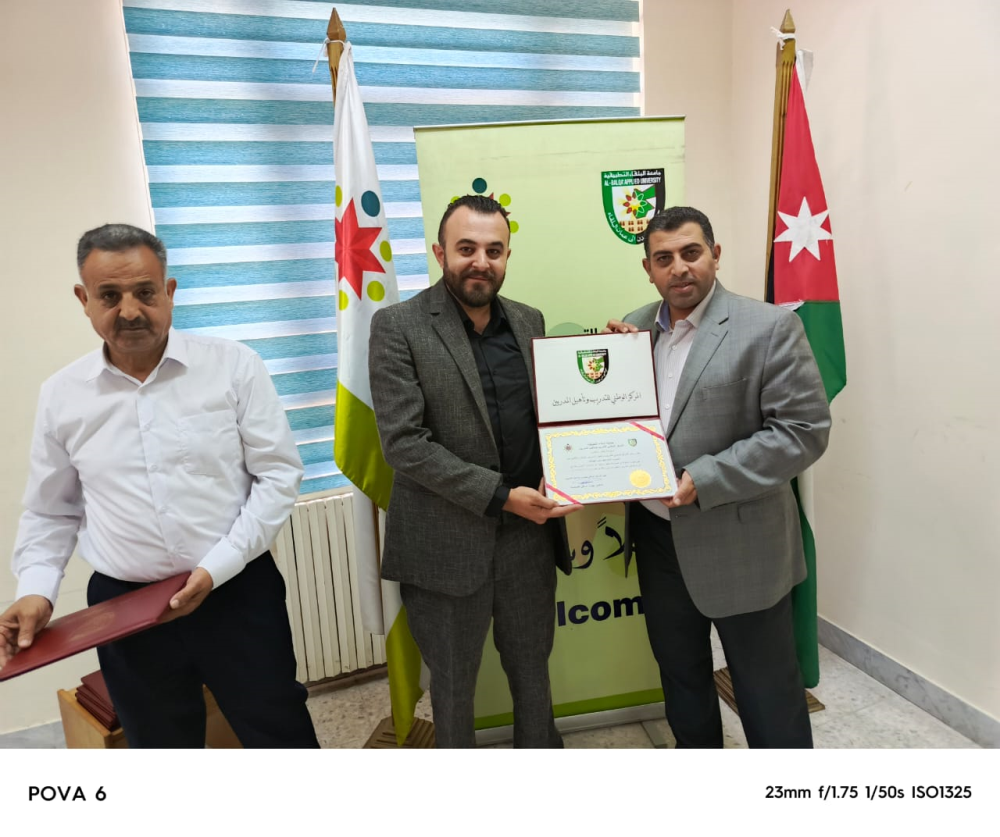 مندوباً عن عطوفة الاستاذ الدكتور احمد فخري العجلوني رئيس جامعة البلقاء التطبيقية رعى الدكتور جودت صافي الكساسبة مدير المركز الوطني للتدريب وتأهيل المدربين اختتام دورة فن المونتاج والتي عقدت لعدد من موظفي وزارة الزراعة .