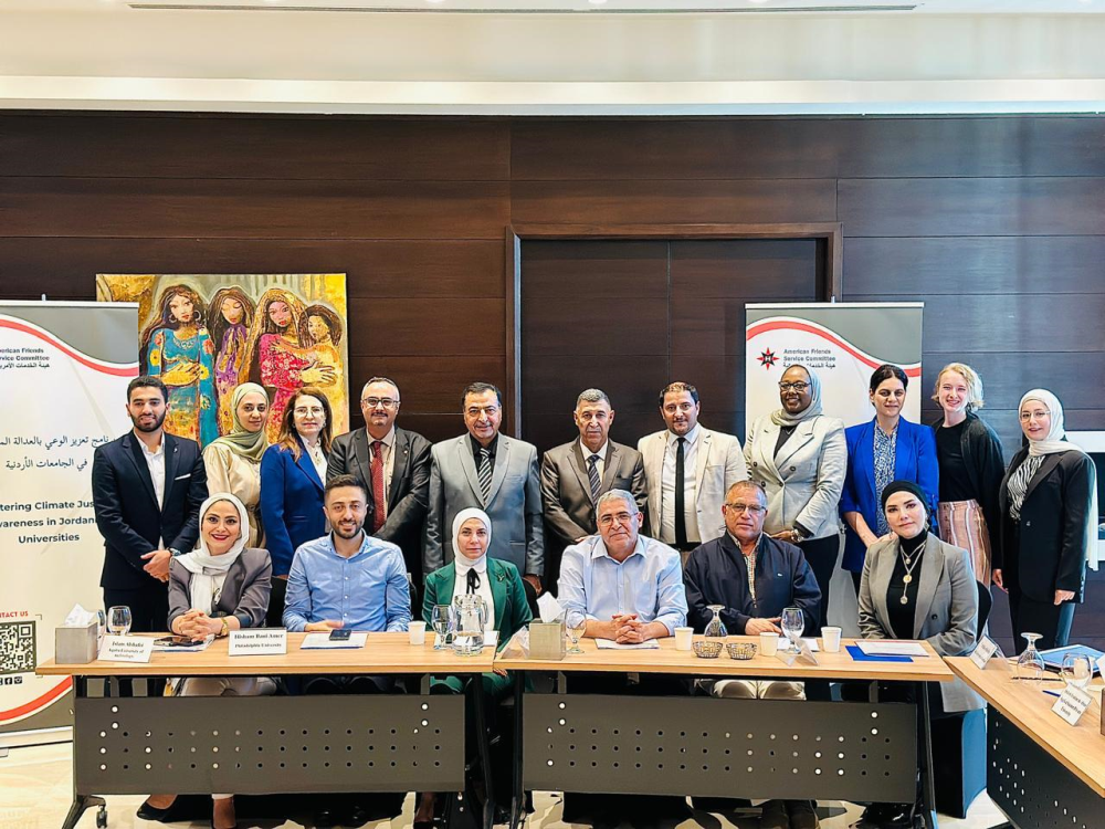 أقام المكتب الإقليمي لهيئة خدمات الأصدقاء الأمريكية أولى جلسات مناقشة مفهوم العدالة المناخية و وتأثيراته على المجتمعات المختلفة بمشاركة المركز الدولي لبحوث المياه والبيئة والطاقة في جامعة البلقاء التطبيقية ممثلا بمديرة المركز الدكتورة هبة الخرابشة ومجموعة من أعضاء هيئة التدريس من الجامعات الأردنية المختلفة والمعنيين بالعدالة المناخية.