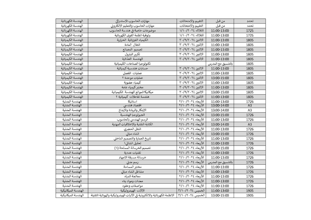 اعلان صادر عن كلية الهندسة التكنولوجية