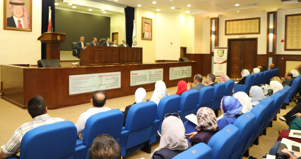 وعن اهمية دعم البحث العلمي أشار العجلوني إلى تميز أعضاء الهيئة التدريسية في الجامعة وكلياتها وخاصة البحث العلمي التطبيقي لسمة الجامعة وتخصصاتها التطبيقية وتميز الجامعة في التصنيفات العالمية محليا وعربيا وعالميا في البحث العلمي والذي ساهم في رفع تصنيف الجامعة عالميا، حاثاً إياهم على المبادرة في كتابة الأبحاث النوعية والبحث العلمي والنشر في المجلات العالمية المرموقة الأمر الذي ينكعس ايجابا عليهم وعلى سمعة الجامعة الأكاديمية .