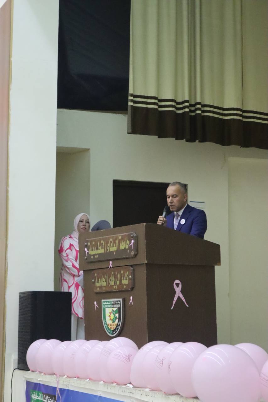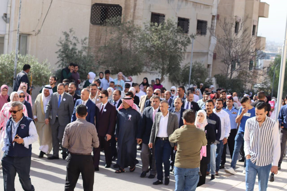 حيث بدأت الفعالية بالمسير على الأقدام بحضور راعي الفعالية والمشاركين من الساحة الأمامية لمبنى المحافظة ومن ثم التوجه إلى كلية الزرقاء الجامعية لاستكمال الفعاليات، واستهل الأستاذ الدكتور زيد سليمان العدوان عميد الكلية اللقاء بكلمة رحب فيها براعي الحفل وكافة الحضور ونقل تحيات الأستاذ الدكتور أحمد فخري العجلوني رئيس جامعة البلقاء التطبيقية وأشار الى أننا في الجامعة نحرص على تنمية الجانب الصحي والنفسي للطلبة وأعضاء الهيئتين التدريسية والإدارية والمجتمع، ومن هنا تأتي أهمية هذا النشاط الذي نسعى من خلاله إلى نشر الوعي حول كيفية الحفاظ على صحة الجسم والعقل لأن ذلك من الركائز الأساسية لبناء مجتمع قوي وسليم سواء على مستوى الفرد أو الجماعة.