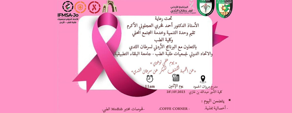 وحدة التنمية وخدمة المجتمع المحلي بالتعاون مع كلية الطب تنظم يوم علمي توعوي عن أهمية الكشف المبكر عن سرطان الثدي