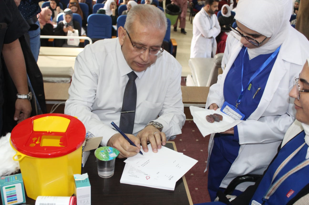 مندوباً عن رئيس جامعة البلقاء التطبيقية الأستاذ الدكتور أحمد فخري العجلوني ، افتتح الأستاذ الدكتور يحيا سلامه خريسات عميد كلية اربد الجامعية، اليوم التطوعي للتبرع بالدم، والذي نظمه قسم العلوم الصحية التطبيقية داخل حرم الكلية بالتعاون مع بنك الدم التابع لوزارة الصحة ،بحضور عدد كبير من أعضاء الهيئتين التدريسية والإدارية والطلبة.