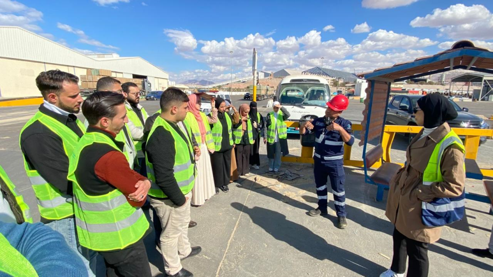 تخلل الزيارة جولة ميدانية في مرافق الشركة، حيث اطلع الطلبة على الأرصفة والساحات، واستمعوا إلى شرح تفصيلي من السيد حمزة المجالي والسيد أحمد العودات حول عمليات المناولة، بما في ذلك التعامل مع المواد الخطرة، والمعدات المستخدمة بمختلف الأحجام والقياسات، بالإضافة إلى خطط الصحة والسلامة المهنية المطبقة في الميناء.