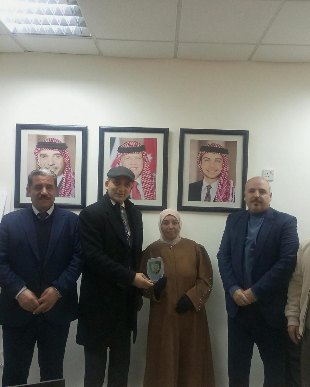 كرّم نائب رئيس الجامعة لشؤون المراكز والمجتمع المحلي، الأستاذ الدكتور خالد الزعبي، السيدة منية العرايضة بمناسبة انتهاء خدمتها في الجامعة بمركز الابتكار والإبداع وريادة الأعمال حيث تم تقديم درع تذكاري و شهادة تقدير تعبيراً عن امتنان الجامعة لما قدمته من خدمات جليلة. وأشاد نائب الرئيس بجهودها وتفانيها في العمل طوال فترة خدمتها، مشيراً إلى أنها كانت مثالاً يحتذى به في الالتزام والإخلاص.