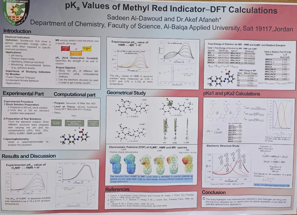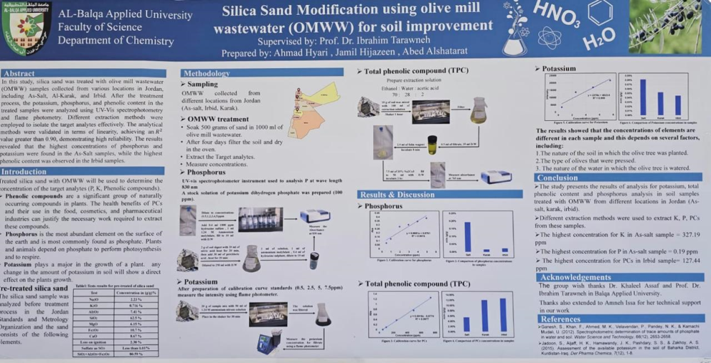 حيث قدم الطلبة أبرز النتائج البحثية التي توصلوا إليها، وذلك من خلال محاضرات وعروض بوسترات علمية، وقد حضر المناقشة عدد من أعضاء الهيئة التدريسية في قسم الكيمياء، الذين أشادوا بمستوى التفوق العلمي الذي وصل إليه الطلاب في جامعة البلقاء التطبيقية وخاصة في قسم الكيمياء.