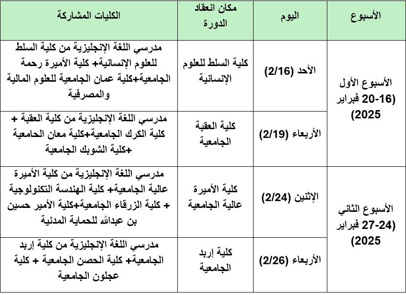* الدعوة موجهة لجميع أعضاء الهيئة التدريسية المختصين في اللغة الإنجليزية. يرجى التنسيق مع الكليات المعنية لضمان الحضور.