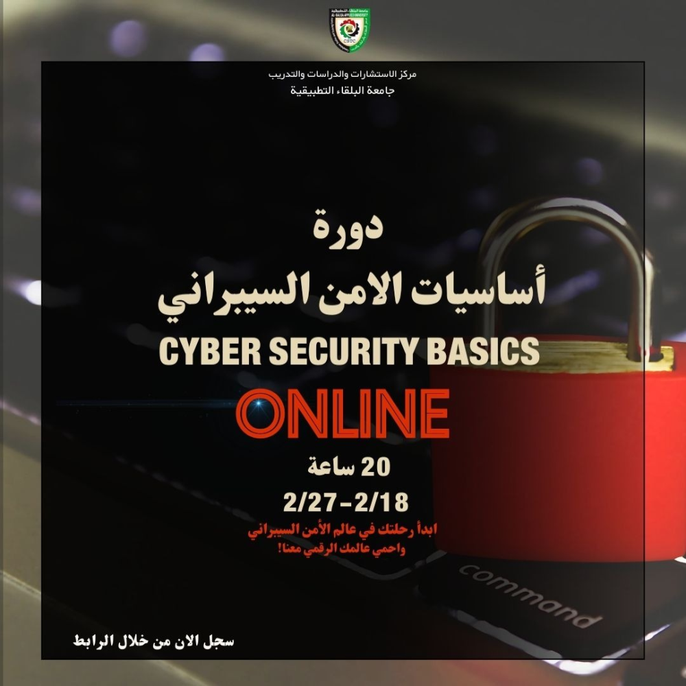 يعلن مركز الاستشارات والدراسات والتدريب عن إطلاق دورة أساسيات الأمن السيبراني، والتي تهدف إلى تزويد المشاركين بالمعرفة والمهارات اللازمة لحماية البيانات وتعزيز الأمن الرقمي.