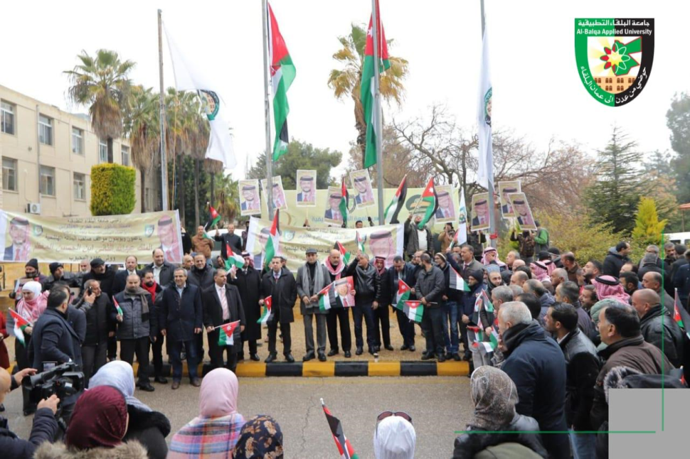 في تجسيد واضح للالتفاف الشعبي حول القيادة الهاشمية، نظّمت جامعة البلقاء التطبيقية وقفةً داعمة لمواقف جلالة الملك عبدالله الثاني الثابتة من القضية الفلسطينية داخل الحرم الجامعي . واختتمت الوقفة بتسيير حافلات نقلت أسرة الجامعة من أعضاء الهيئتين التدريسية والإدارية والطلبة للمشاركة في استقبال جلالته وولي عهده الأمير الحسين بن عبدالله بعد عودته من الولايات المتحدة الأمريكية، تأكيداً على دعم الجامعة المطلق لمواقف جلالته الثابتة في الدفاع عن القضية الفلسطينية وترسيخ الوحدة الوطنية الأردنية.