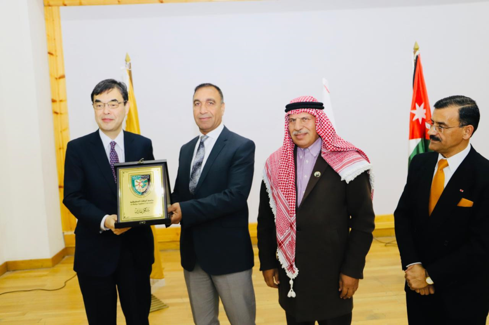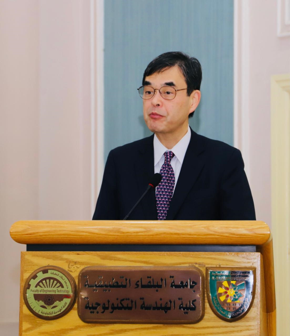 تحت رعاية الأستاذ الدكتور زيد العنبر نائب رئيس جامعة البلقاء التطبيقية للشؤون الأكاديمية والتعليم التقني مندوباً عن الأستاذ الدكتور أحمد فخري العجلوني رئيس الجامعة، أقامت السفارة اليابانية في الأردن حفل افتتاح اليوم الثقافي الياباني في مسرح مركز الأميرة جنة بنت غازي الثقافي ، بحضور سعادة السفير الياباني أساري هيديكي، والأستاذ الدكتور أحمد سلامة عواد عميد كلية الهندسة التكنولوجية، ونواب العميد والمساعدين، وعدد من المشاركين والضيوف والطلبة.