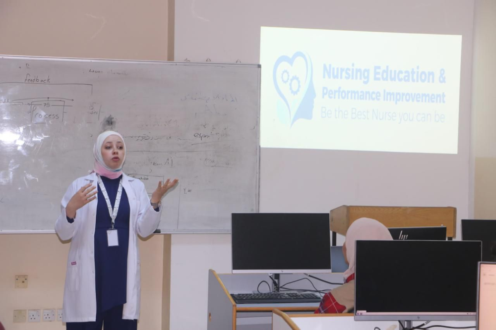 وفي نهاية الورشة كرم عميد الكلية الأستاذ الدكتور احمد الدحيات الممرضة ، معبراً عن شكره على جهودها القيمة ومؤكداً حرص الكلية على تنظيم فعاليات توعوية تسهم في رفع مستوى الوعي الصحي والثقافي لدى الطلبة.