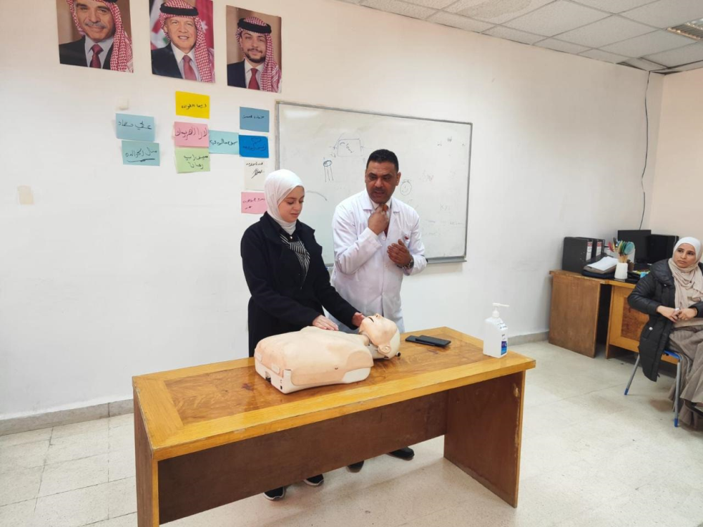وقدّم الورشة مدير دائرة التمريض في المستشفى، السيد مصطفى العبادي، حيث تم تسليط الضوء على أساسيات الإنعاش القلبي وأهميته في إنقاذ الأرواح، إلى جانب تدريب عملي للمشاركين على كيفية التعامل مع الحالات الطارئة( فقدان الوعي، الجرعات الزائدة من الأدوية والمواد المخدره ، بلع اللسان الكلي والجزئي، ضربة الشمس )