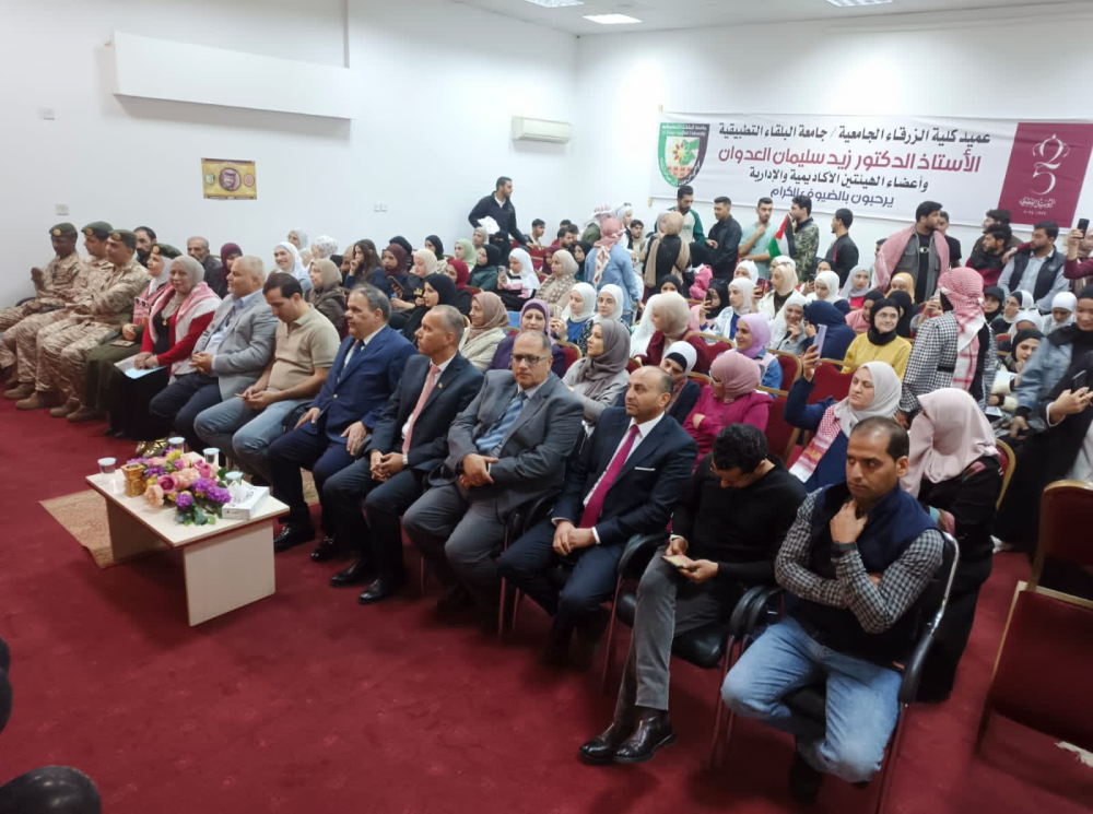 احتفلت كلية الزرقاء الجامعية بيوم العلم الأردني في أجواء مفعمة بالفخر والانتماء، وذلك برعاية الأستاذ الدكتور زيد سليمان العدوان عميد الكلية، وبمشاركة معالي العين الأسبق الدكتور طلال الشرفات، وبحضور عدد كبير من أعضاء الهيئتين التدريسية والإدارية والطلبة.