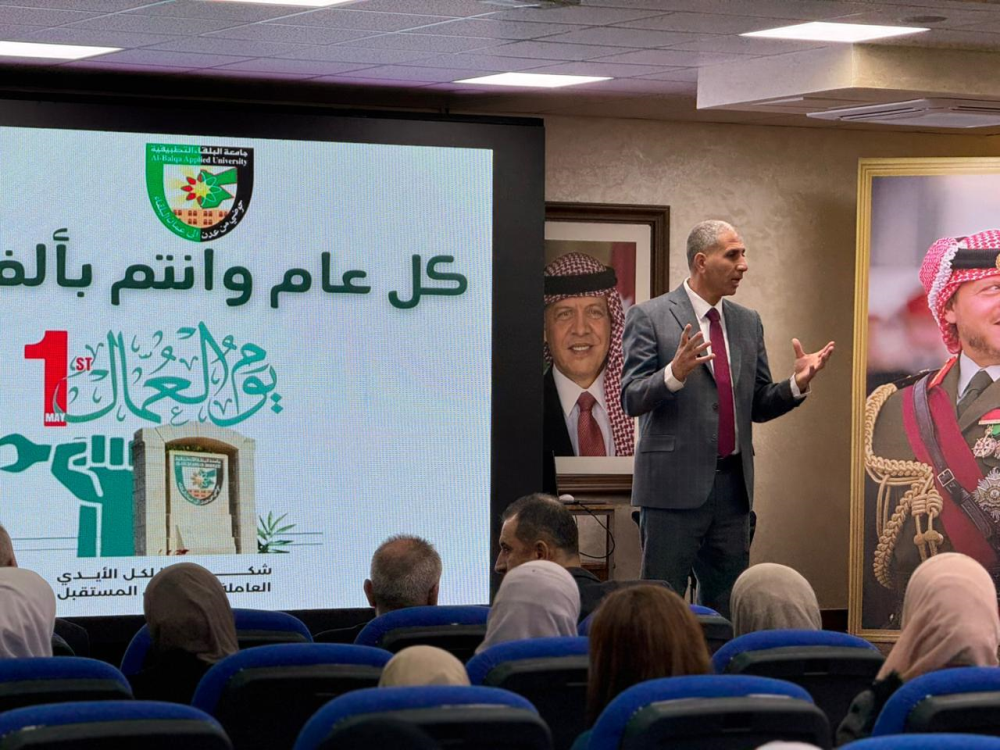 تحت توجيهات رئيس جامعة البلقاء التطبيقية الأستاذ الدكتور أحمد فخري العجلوني، نظّمت كلية عجلون الجامعية فعالية بمناسبة يوم العمال العالمي لتكريم العاملين فيها. حضر الاحتفال عميد الكلية الدكتور وائل الربضي ونائب العميد الدكتور أيمن فريحات، إضافة إلى أعضاء الهيئتين الأكاديمية والإدارية وموظفي الأمن وفريق الحماية وعدد من العاملين في الكلية.