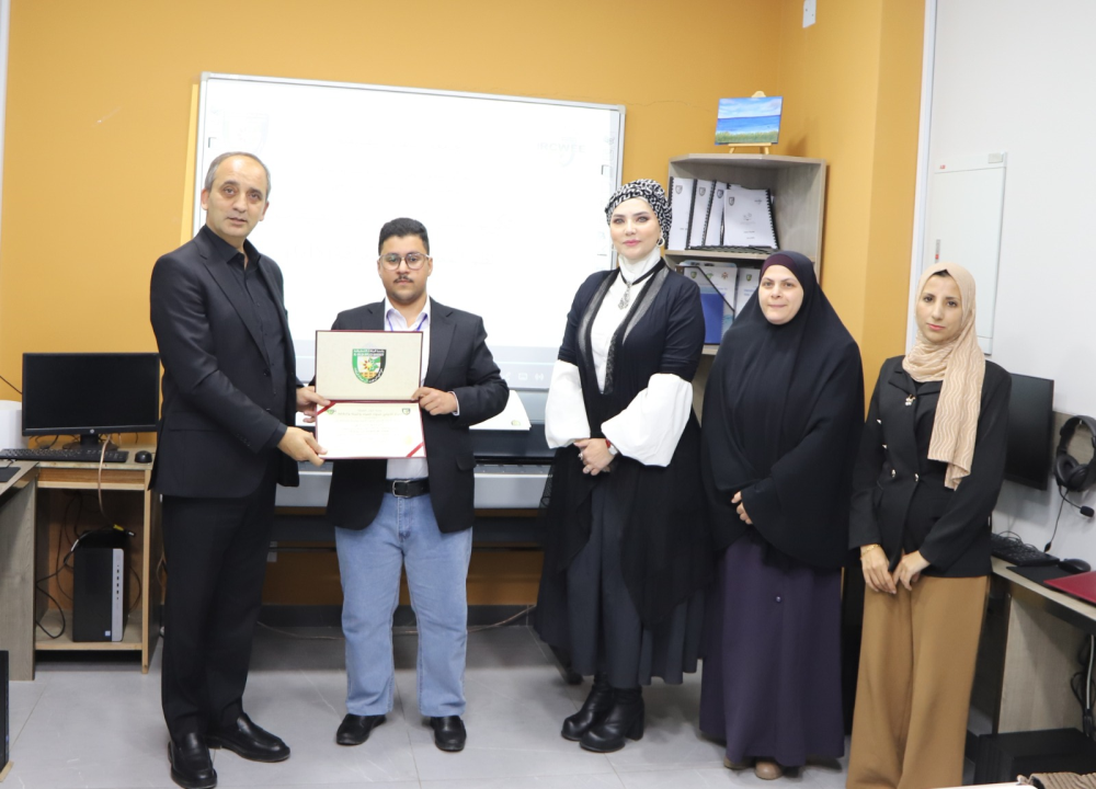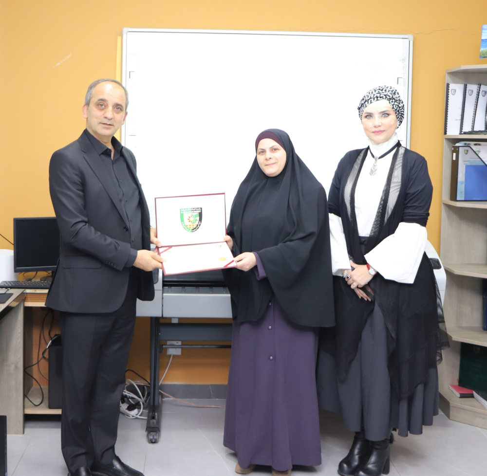 وفي ختام الحفل، وزّع الدكتور الزعبي الشهادات على المشاركين تقدير لجهودهم، وكرّم المدرب المهندسة إيمان الشاعر بشهادة شكر لدورها المميز في تقديم محتوى الدورة.