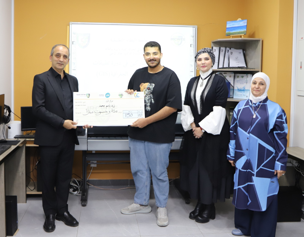 وفي ختام الحفل، قام الدكتور الزعبي بتوزيع الجوائز المالية على الفائزين بالمراكز الثلاثة الأولى بدعم من البنك الأهلي الأردني، وسط أجواء من الفخر والفرح، تقديرًا لما قدموه من أعمال فنية وإبداعية تترجم الوعي البيئي إلى رسائل بصرية ملهمة تسهم في التثقيف البيئي داخل الحرم الجامعي وخارجه.