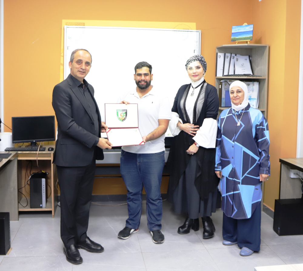 وقد رعى حفل التكريم مندوبًا عن رئيس الجامعة الأستاذ الدكتور أحمد فخري العجلوني،نائب الرئيس للشؤون الإدارية وشؤون المراكز الأستاذ الدكتور خالد ناصر الزعبي، وبحضور الدكتورة هبة الخرابشة، مدير المركز الدولي لبحوث المياه والبيئة والطاقة.