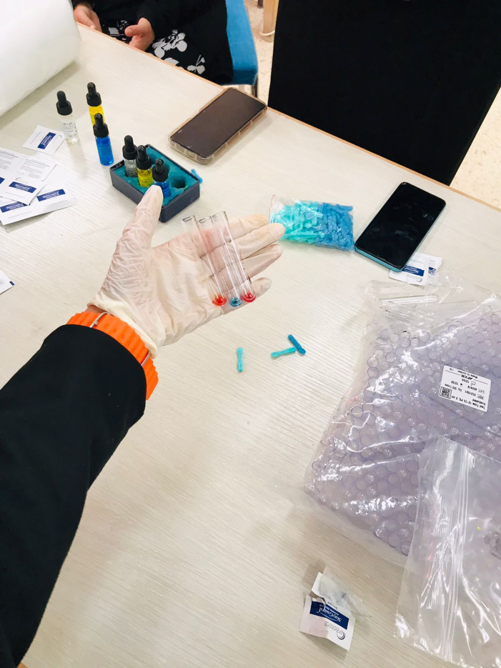 وفحص عملي لزمر دم الطالبات والمدرسات.