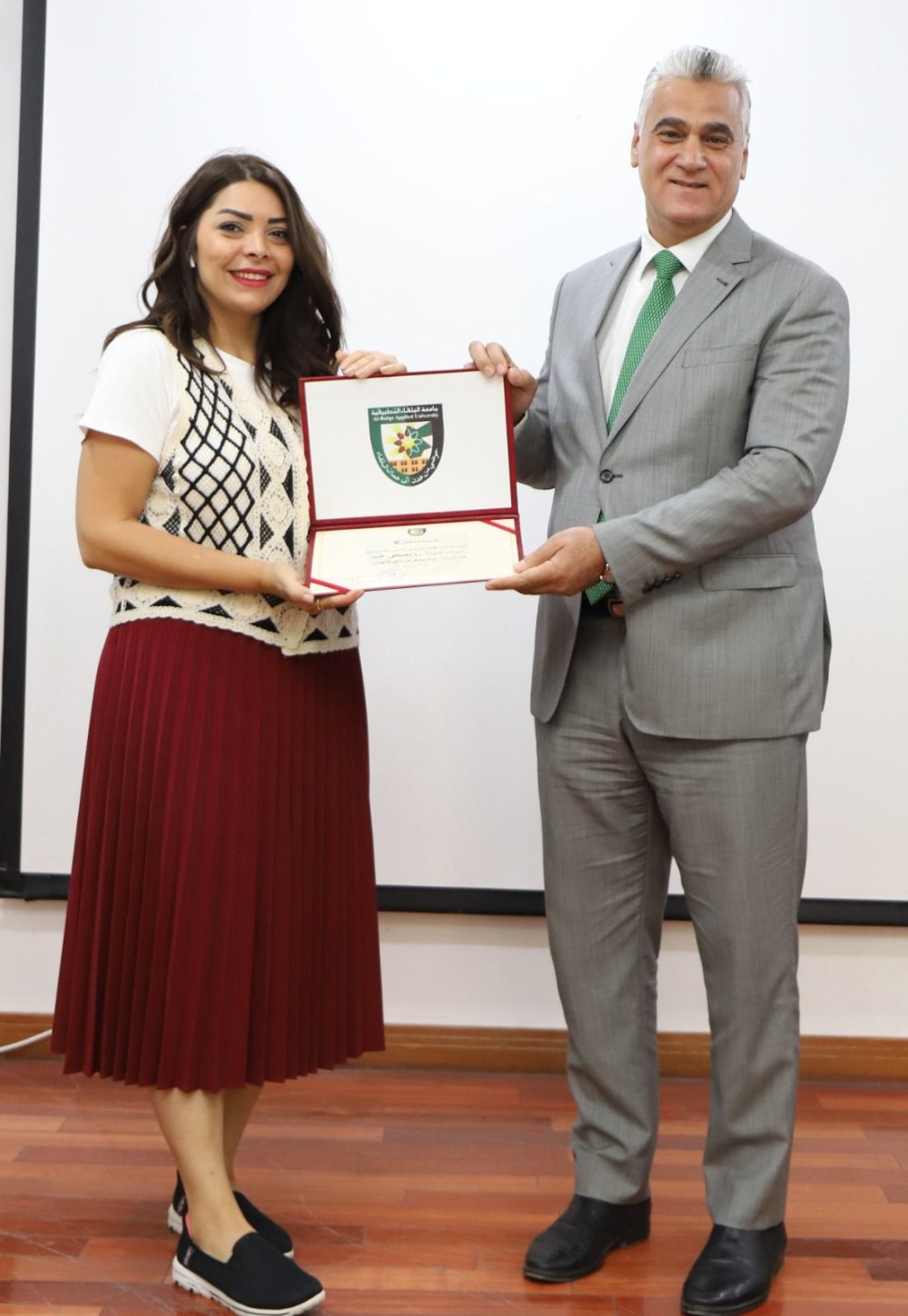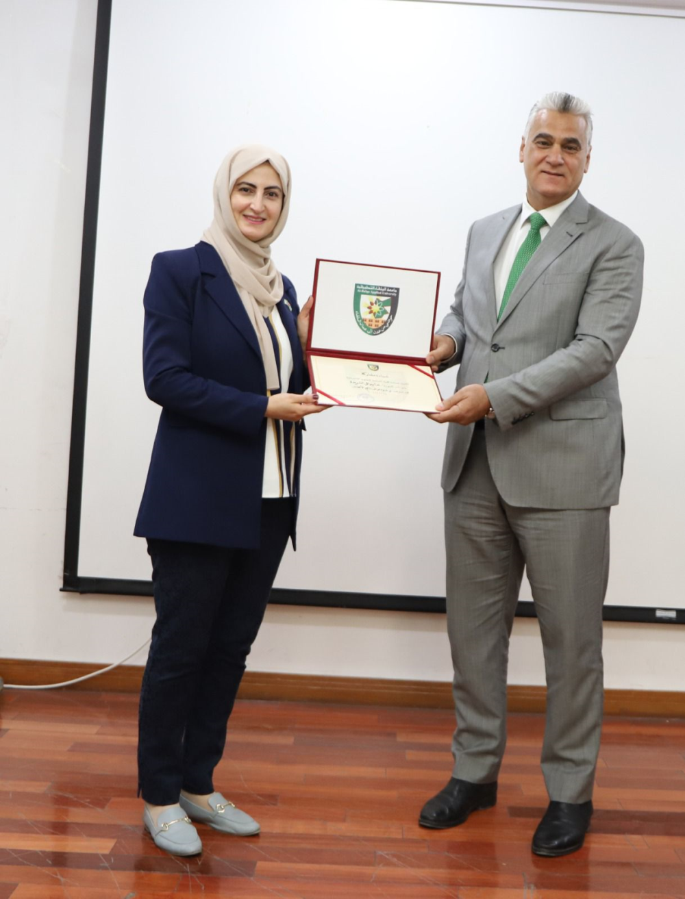 وفي ختام الجلسة، قام الدكتور الرحامنة بتكريم الباحثين المشاركين وتوزيع الشهادات التقديرية عليهم، مشيدًا بمستوى الأبحاث المقدمة ودورها في تعزيز جودة التعليم والبحث العلمي في الكلية.