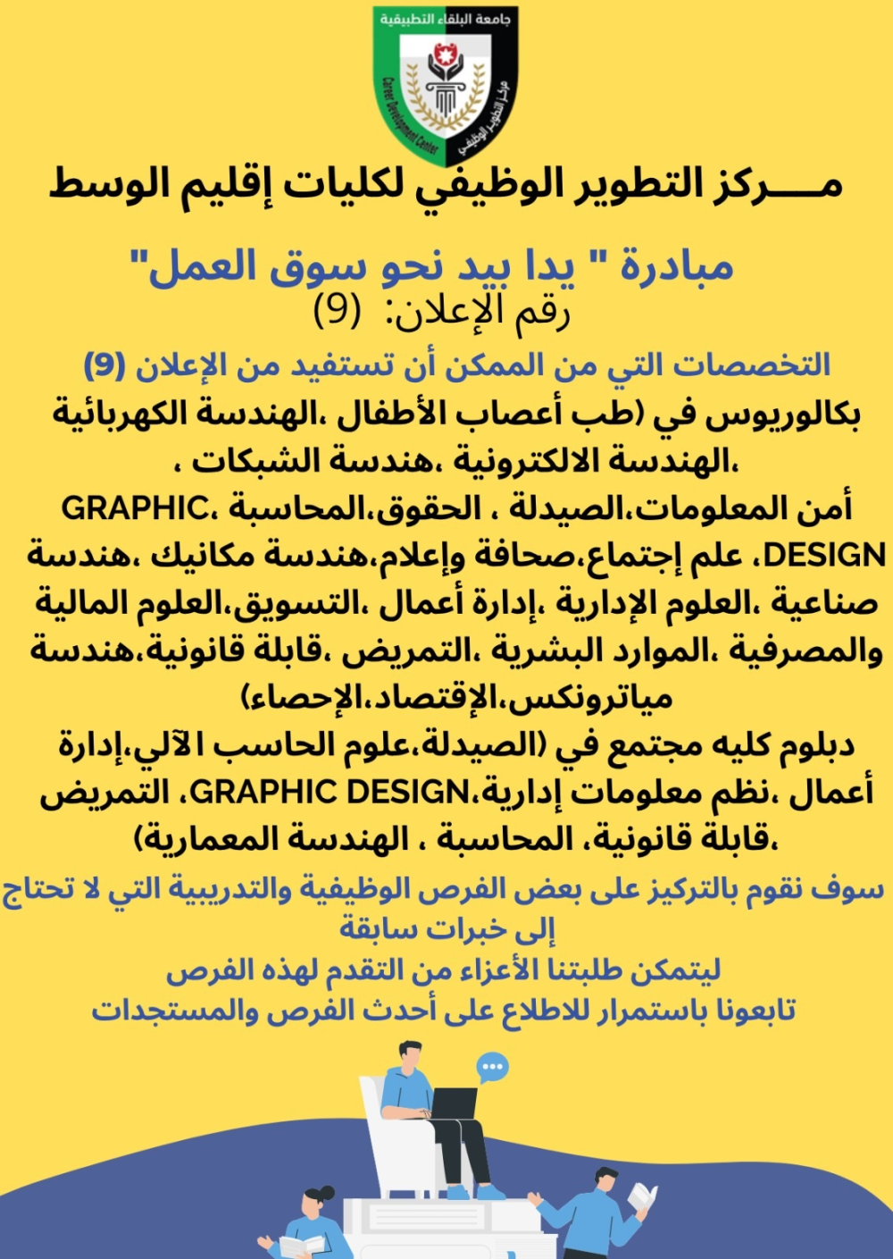 رقم الاعلان: اعلان (9) – مبادرة " يدا بيد نحو سوق العمل"