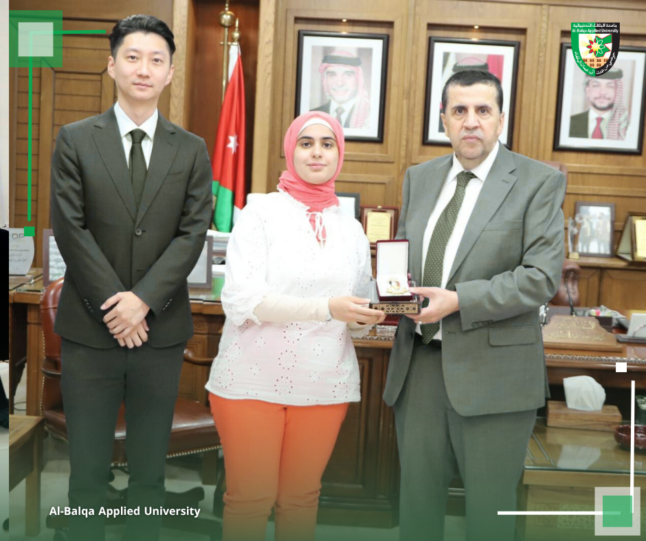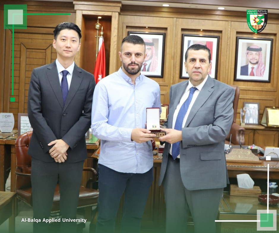 وأثنى الدكتور العجلوني خلال التكريم على الطلبة الفائزين محمد أبو صاع، لما حصوه، ولبنى عيسى، والمشرف على الفريق الأستاذ الدكتور عمر أحمد الزعبي – عميد كلية الذكاء الاصطناعي – والمهندسة ديانا الطهراوي، مشيدًا بأدائهم المتميّز وتمثيلهم المشرف للأردن وجامعة البلقاء التطبيقية في هذا المحفل التكنولوجي الدولي.