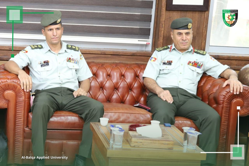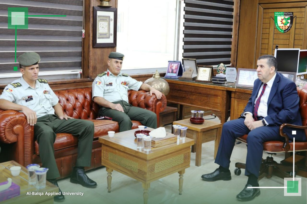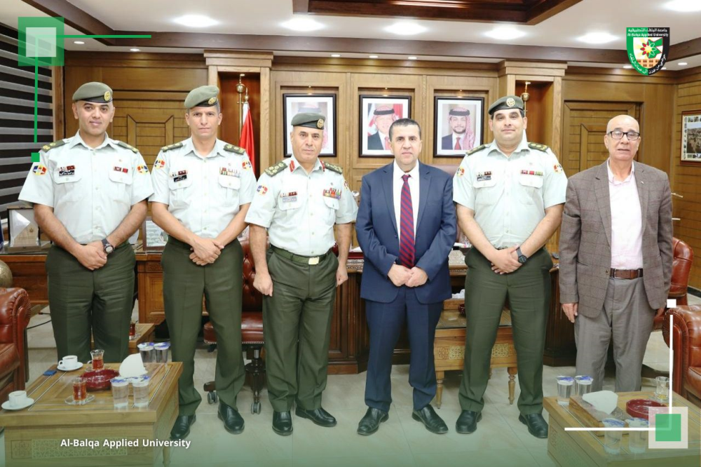 استقبل الأستاذ الدكتور أحمد فخري العجلوني، رئيس جامعة البلقاء التطبيقية، عطوفة آمر كلية الأمير الحسين بن عبد الله الثاني الفنية العسكرية، العميد الركن المهندس عمر الشوابكة، يرافقه عدد من أعضاء الهيئة التدريسية في الكلية.