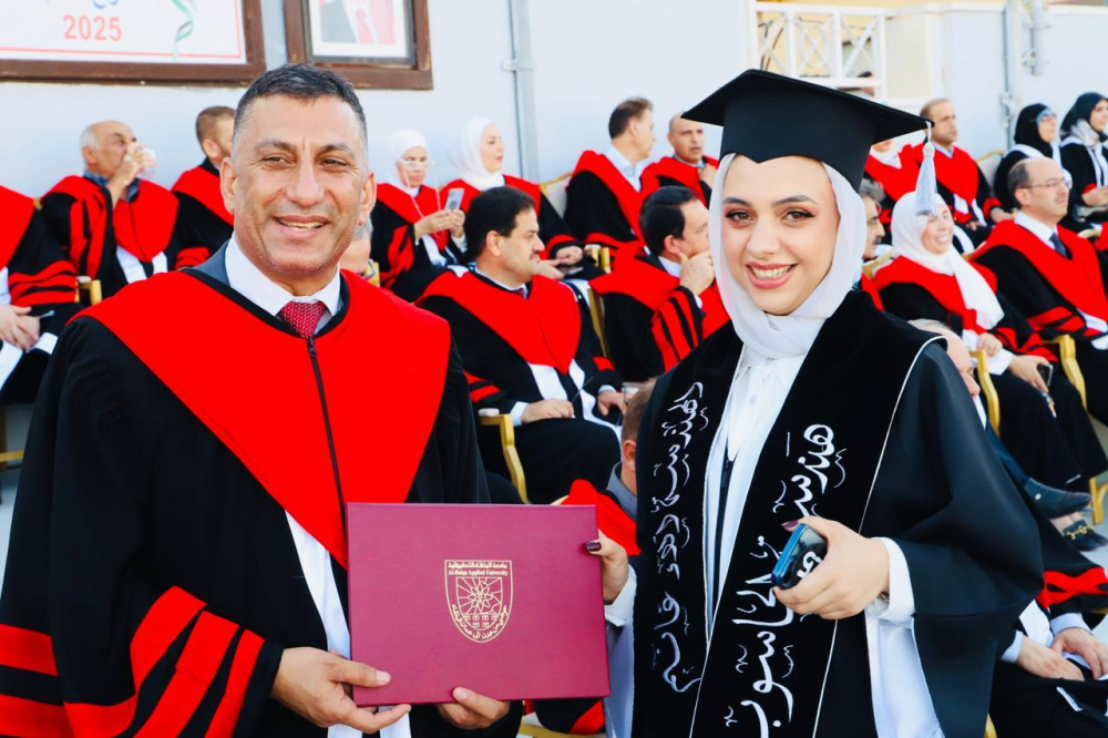 مندوبًا عن رئيس جامعة البلقاء التطبيقية، الأستاذ الدكتور أحمد فخري العجلوني، رعى عميد كلية الهندسة، الأستاذ الدكتور رضوان قاسم الدويري، وعميد كلية الزراعة التكنولوجية، الأستاذ الدكتور محمد سلامة العلاوي، حفل تخريج الفوج الخامس والعشرين من طلبة كليتي الهندسة والزراعة التكنولوجية، وذلك بحضور عميد شؤون الطلبة، الأستاذ الدكتور خلف ختاتنة، وأعضاء الهيئة التدريسية في الكليتين، وجمع غفير من أهالي الطلبة، على الملعب الرئيسي في الجامعة.