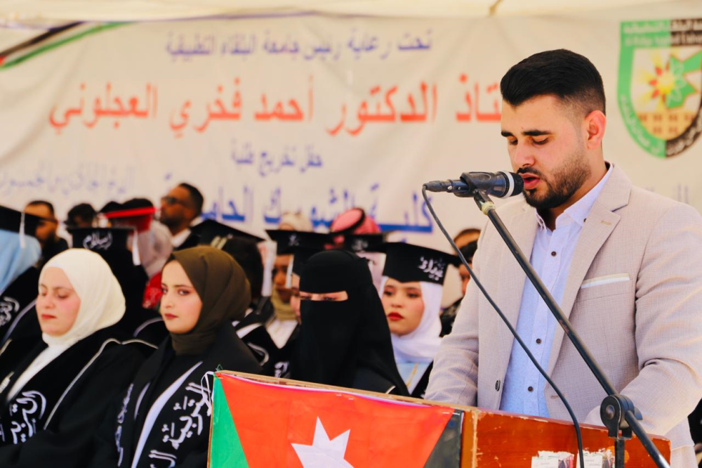 مندوباً عن رئيس جامعة البلقاء التطبيقية الأستاذ الدكتور أحمد فخري العجلوني رعى الأستاذ الدكتور عوده سليمان مراد عميد كلية الشوبك الجامعية حفل تخريج الفوج الخامس والعشرين (فوج العلم )من طلبة البكالوريوس بحضور أعضاء الهيئتين التدريسية والإدارية وجمع غفير من ذوي الخريجين.