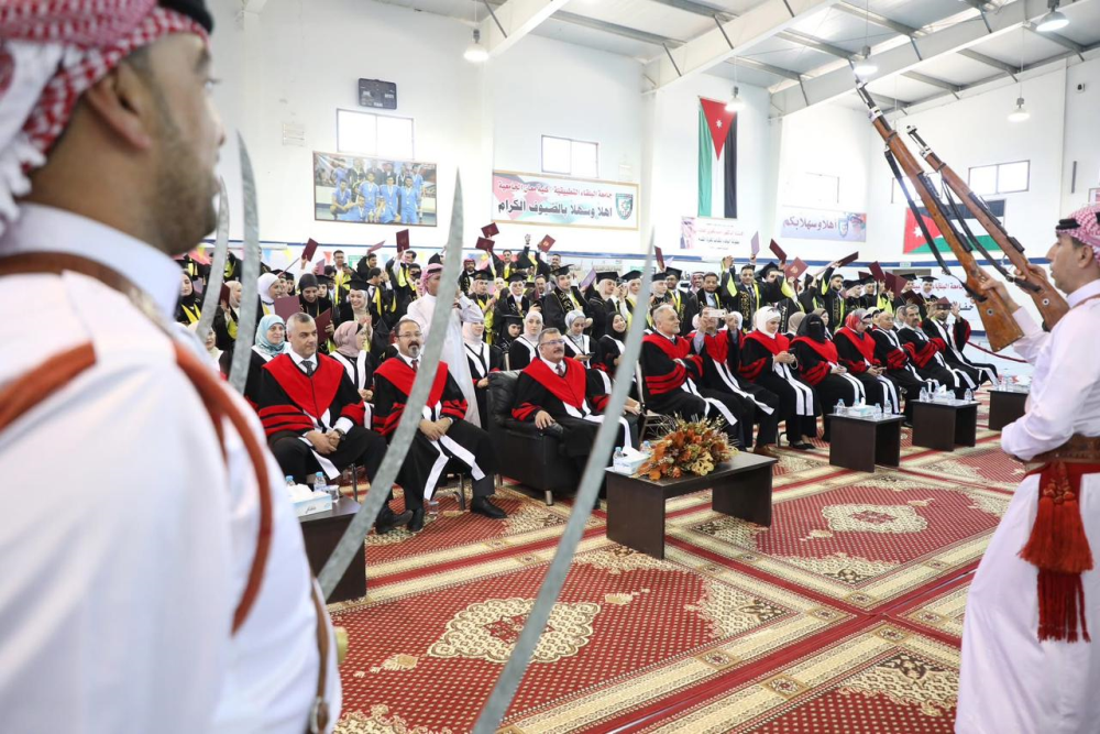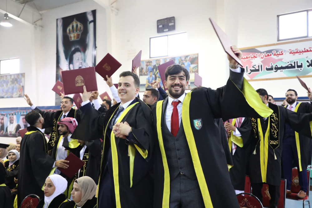 وفي كلمته، نقل الدكتور الخطيب تهاني رئيس الجامعة واعتزازه بالخريجين، مؤكدًا التزام كلية معان الجامعية برسالتها الوطنية في إعداد كوادر بشرية متميزة قادرة على تلبية احتياجات سوق العمل، من خلال برامج تعليمية وتطبيقية ذات جودة عالية، ضمن بيئة تعليمية محفزة للإبداع والتميز.